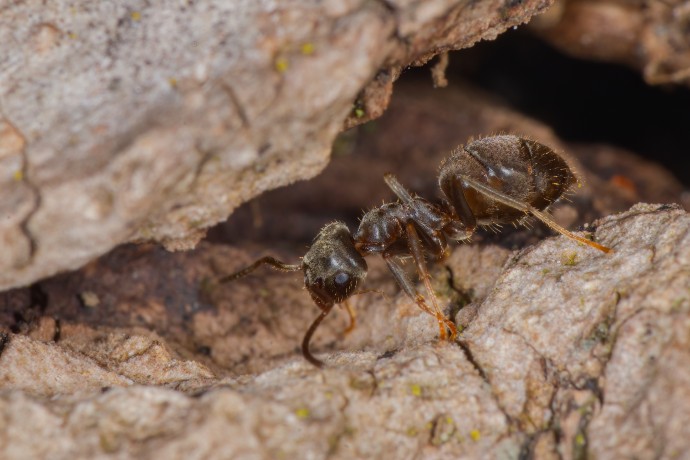 - mravenec drnový (Tetramorium caespitum) – hnízdí často pod kameny, chodníky, v trávníku a královna může založit hnízdo při rojení i uvnitř budov.