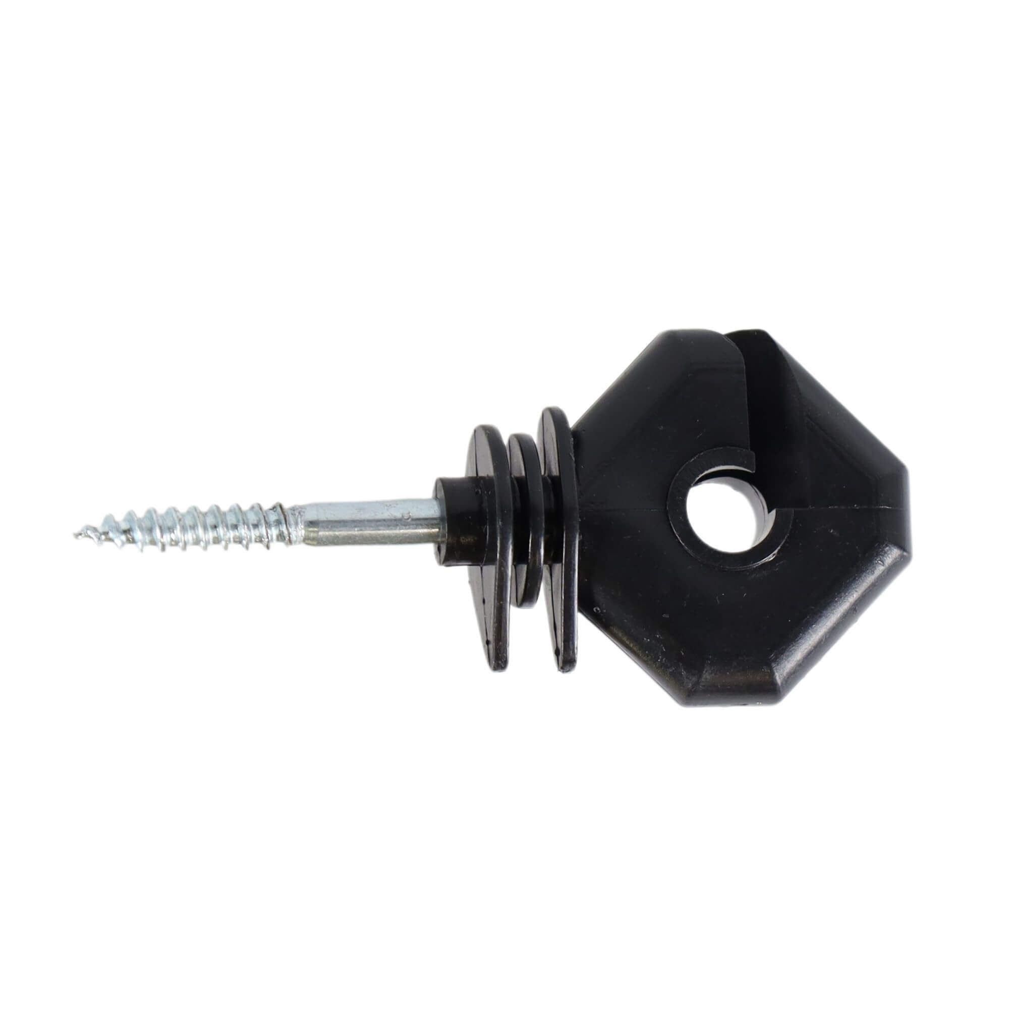 Hranatý plastový izolátor so skrutkou určený pre lanká, laná a drôty pre elektrické ohrady.