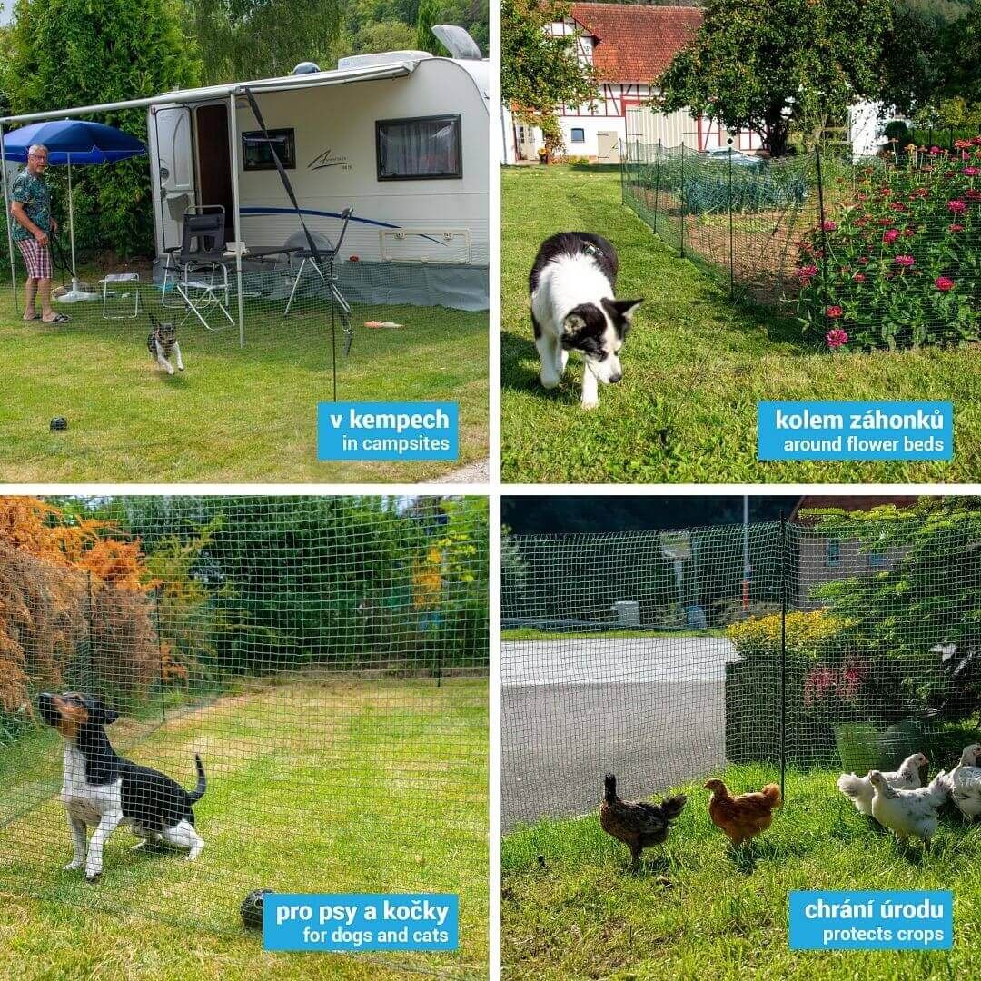 Vďaka jednoduchému zloženiu a rozloženiu je fixná nevodivá sieť ideálnou voľbou pre prenosný výbeh pre psa, ohradenie pri kempovaní alebo na vymedzenie jednotlivých plôch. Na ochranu mladých rastlín, okrasných záhonov, záhonov s paradajkami, zeleninou a ďalšími plodinami.