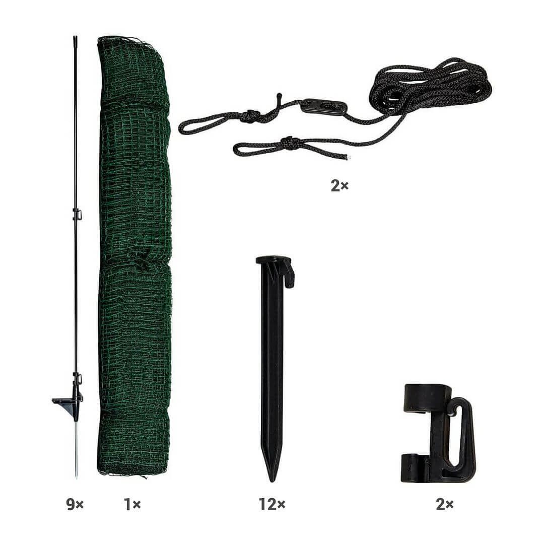 • 1 ks nevodivej siete v nenápadnej zelenej farbe, dĺžka 15 m, výška 90 cm