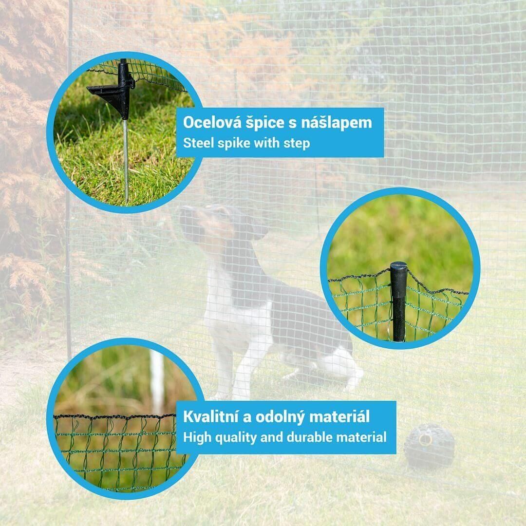 • fixný mobilný zapichovací plot pre psy na krátkodobú a mechanickú zábranu pre menšie zvieratá