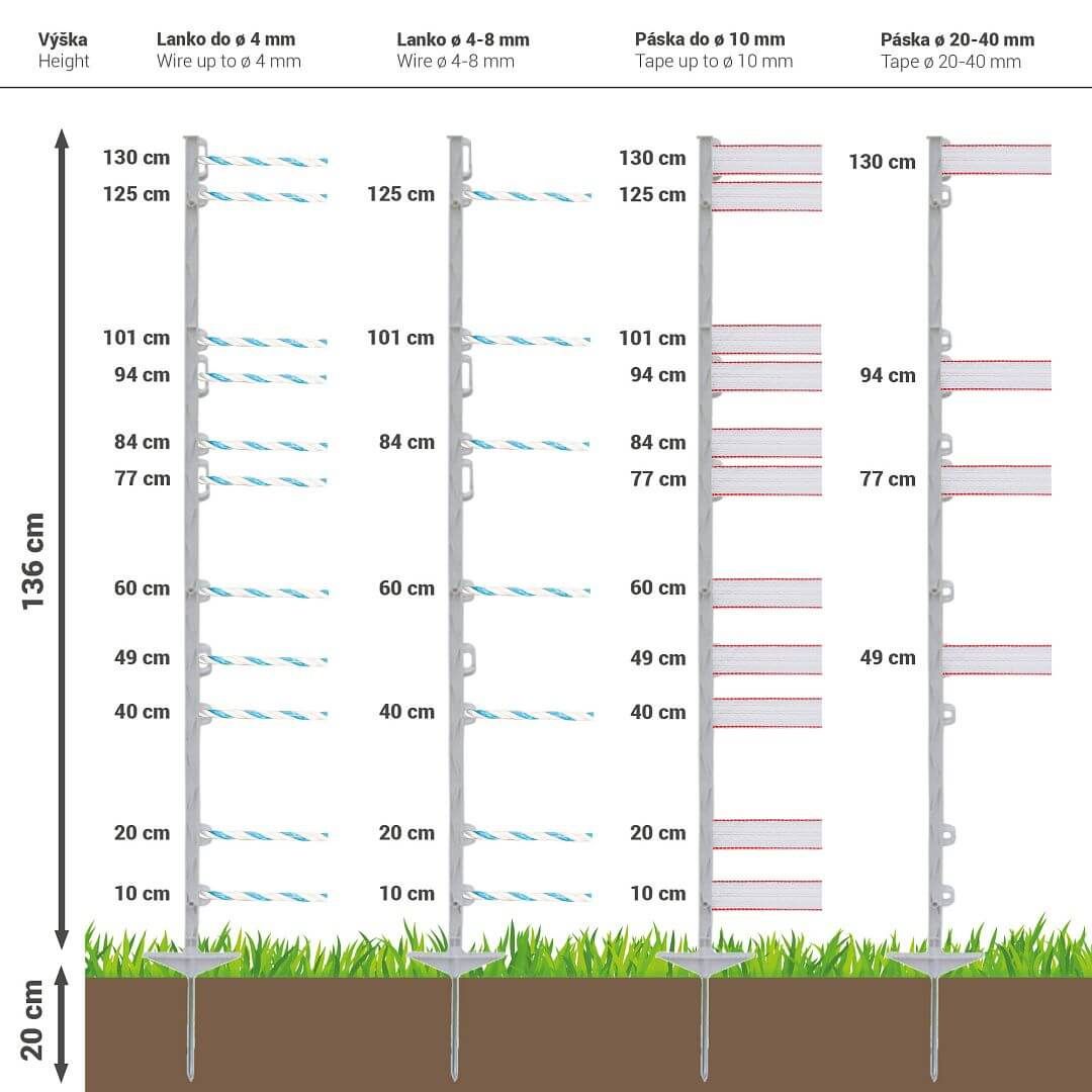 Kompletná sada elektrickej ohrady obsahuje ohradníkové lanko 3 mm v návine 400 m. Výšku ohradenia až 136 cm nad zemou vytvoríte pomocou mobilných plastových stĺpikov s 11 očkami pre individuálnu voľbu vedenia vodičov. Uzemňovacie tyče a 3 m zemniaci kábel. Kompletná sada elektrického ohrady je praktická, mobilná a ľahko sa skladá.