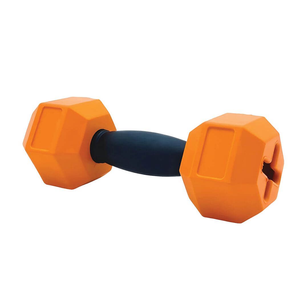 • oranžová gumová činka na aport s otvorom na maškrty (160 g)