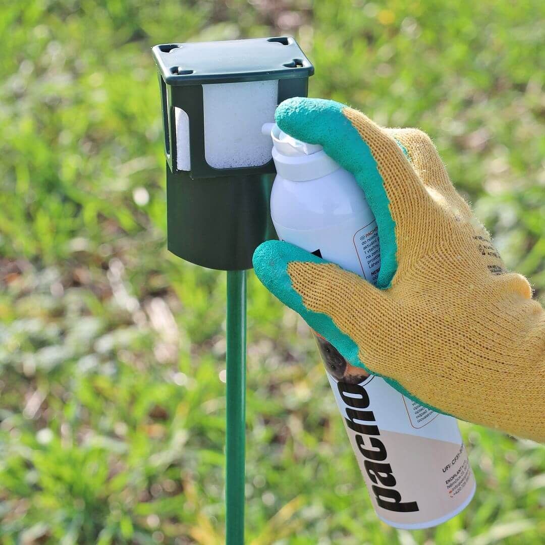 Pachová ohrada proti vysokej zveri, diviakom aj zajacom obsahuje pachovú látku, ktorá imituje pach predátora a pomáha držať zver v bezpečnej vzdialenosti od rušných komunikácií. Najskôr vložte biodegradovateľný nosič pachovej ohrady BIO10-PO do špeciálneho PROFI adaptéra. Adaptéry s nosičmi umiestnite na sklolaminátové stĺpiky a rozmiestnite ich v rozostupe 10 metrov od seba. Injektujte ekologické nosiče pachovej látky koncentrátom pachovej ohrady po dobu 1 sekundy na 3 miestach.