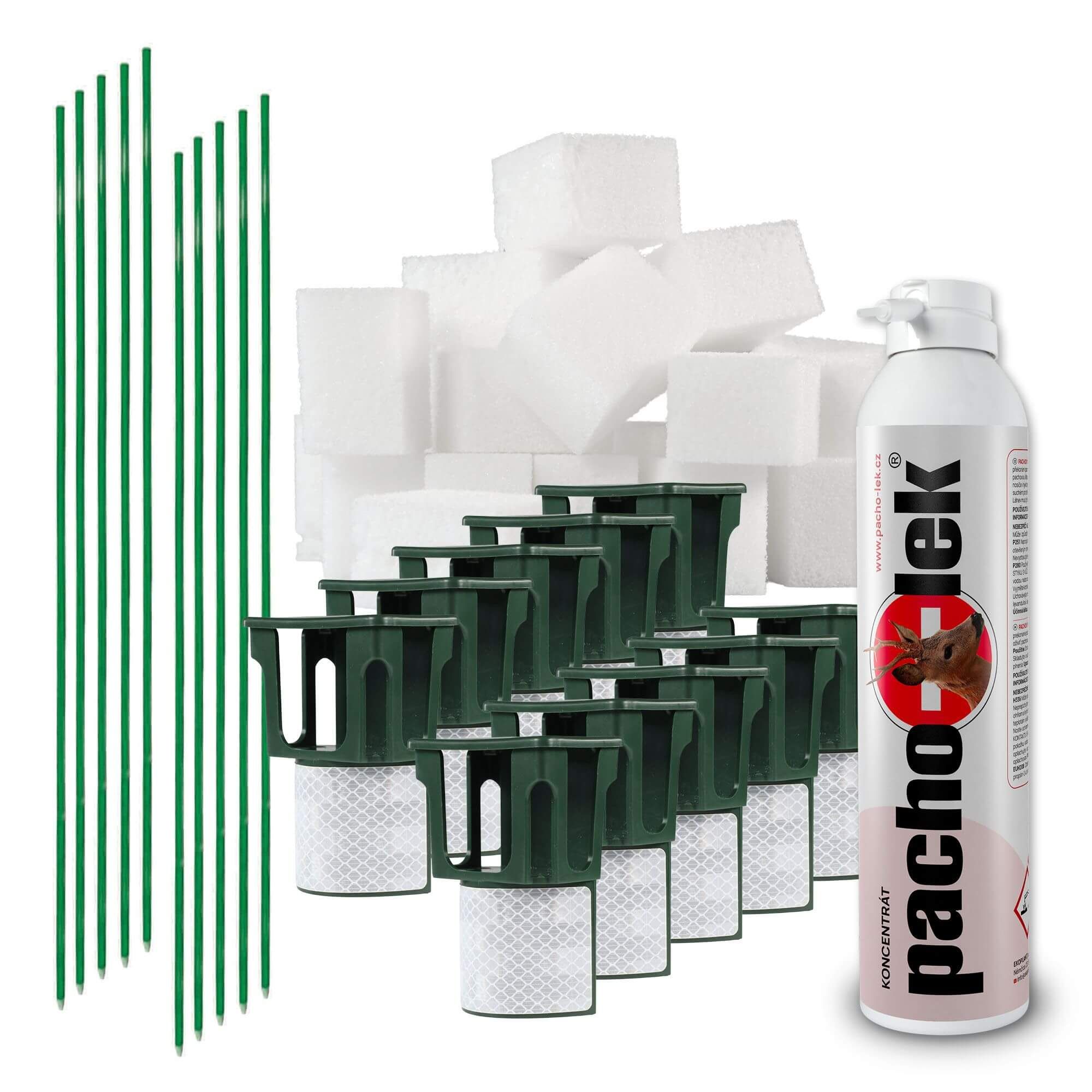 Sada na jednoduchú inštaláciu pachovej ohrady proti srnám, jeleňom, muflónom, danielom, diviakom aj zajacom pomáha znížiť počet kolízií vozidiel so zverou a zabraňuje tak zveri vstupovať na komunikácie.