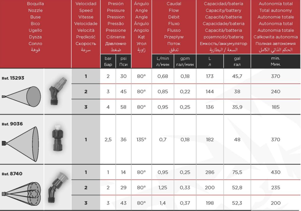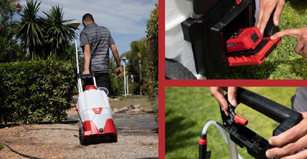 Postrekovač ponúka tri voliteľné stupne výkonu s maximálnym pracovným tlakom až 4 bary. Zvolený stupeň udržiava konštantný tlak a veľkosť kvapiek, čo zaručuje vysokú kvalitu a efektivitu aplikácie. Výkonná batéria a čerpadlo postrekovača umožňujú prácu až po dobu 7 hodín.
