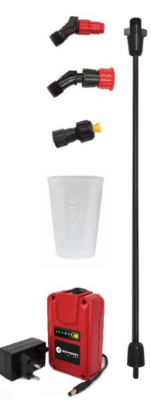 Súčasťou štandardnej dodávky sú navyše tri rôzne trysky, 50 cm predlžovacia trubica, Li-Ion batéria a nabíjačka.