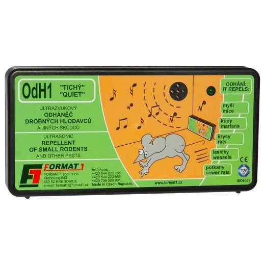 Ultrazvukový elektronický plašič myší, plašič kún, krýs, lasíc a potkanov. Ide o čisto český produkt s dlhoročnou tradíciou na trhu (od r. 1991), vyrábaný firmou FORMAT1 spol. s r. o. Spoľahlivý, výkonný, za viac než 29 rokov overený mnohými zákazníkmi. Neškodný pre človeka ani pre domáce hospodárske zvieratá.