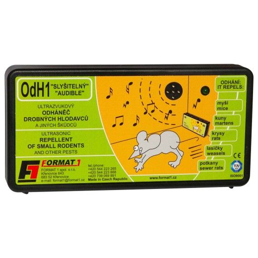 Zvukovo-ultrazvukový elektronický odpudzovač myší, odpudzovač kún, krýs, lasíc a potkanov. Ide o čisto český produkt s dlhoročnou tradíciou na trhu (od r. 1991) vyrábaný vo firme FORMAT1 spol. s r. o. Spoľahlivý, výkonný, za viac ako 29 rokov overený mnohými zákazníkmi. Neškodný pre človeka ani pre domáce hospodárske zvieratá.