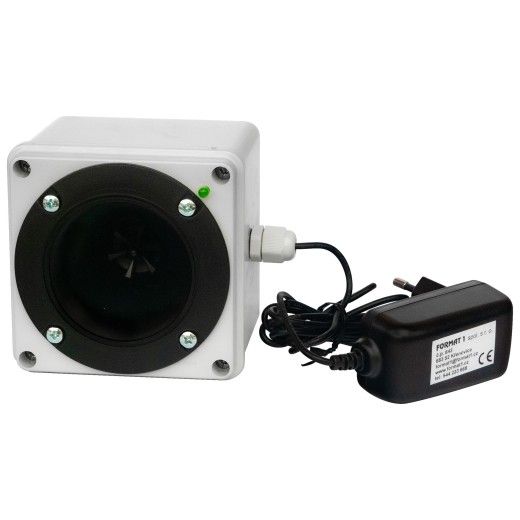 Vzhľadom na veľký akustický výkon možno odpudzovač napájať iba sieťovým adaptérom na tento účel určeným. Prevádzka prístroja na batérie by už bola neekonomická.